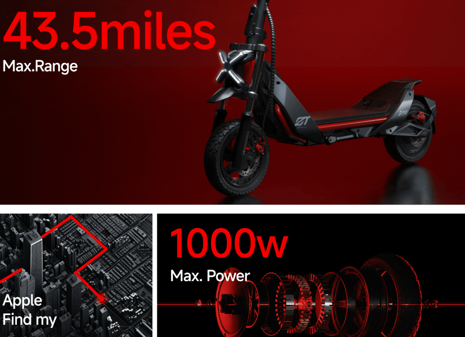The ZT3 Pro, features front dual telescopic suspensions with rear spring suspension to smoothly conquer rough terrain. The 11-inch off-road tubeless tires ensure grip and durability, With the new stability enhancement system SegRide, AirLock, and Apple Find My, it's built for convenience, safety, and adventure.